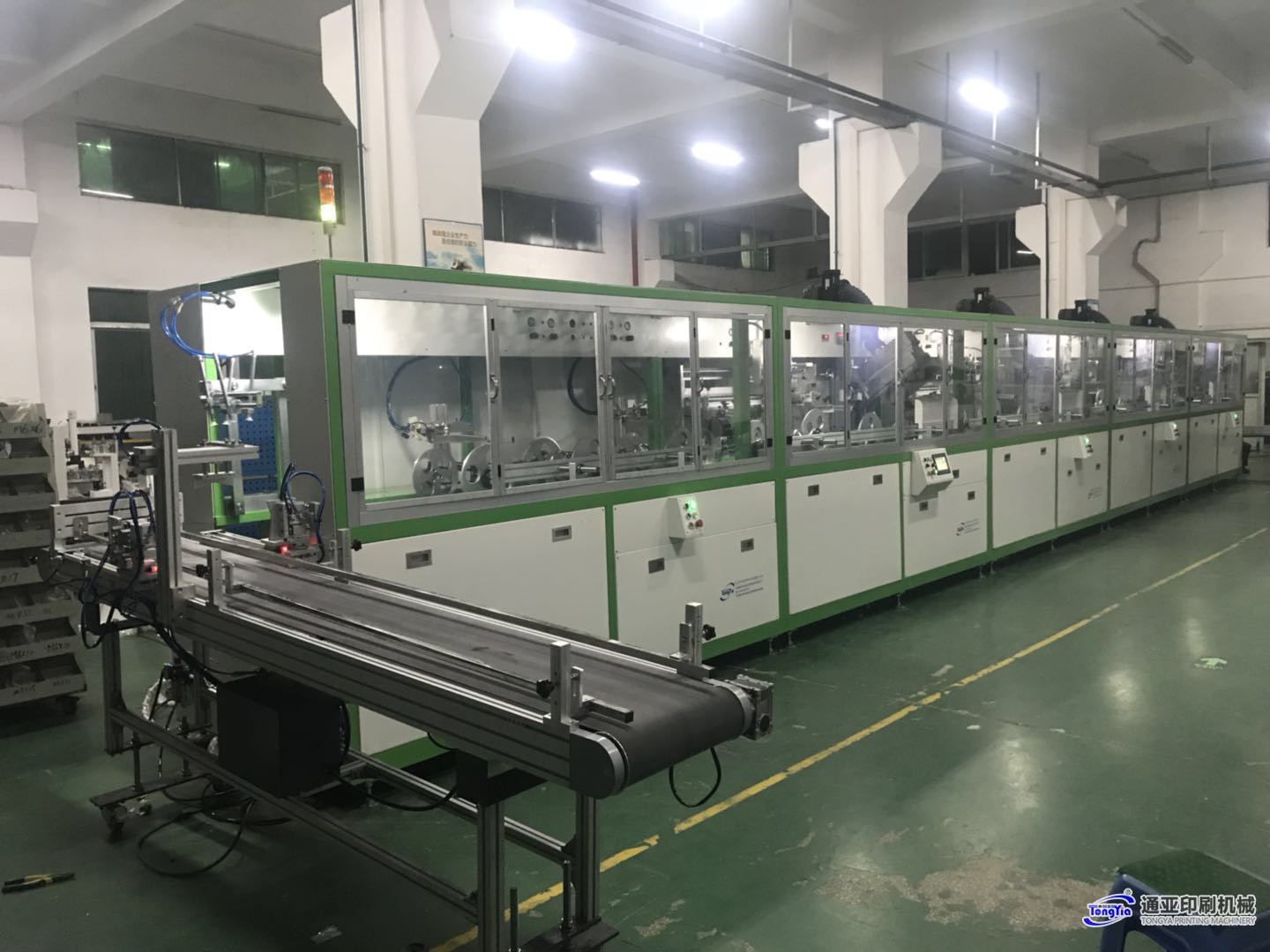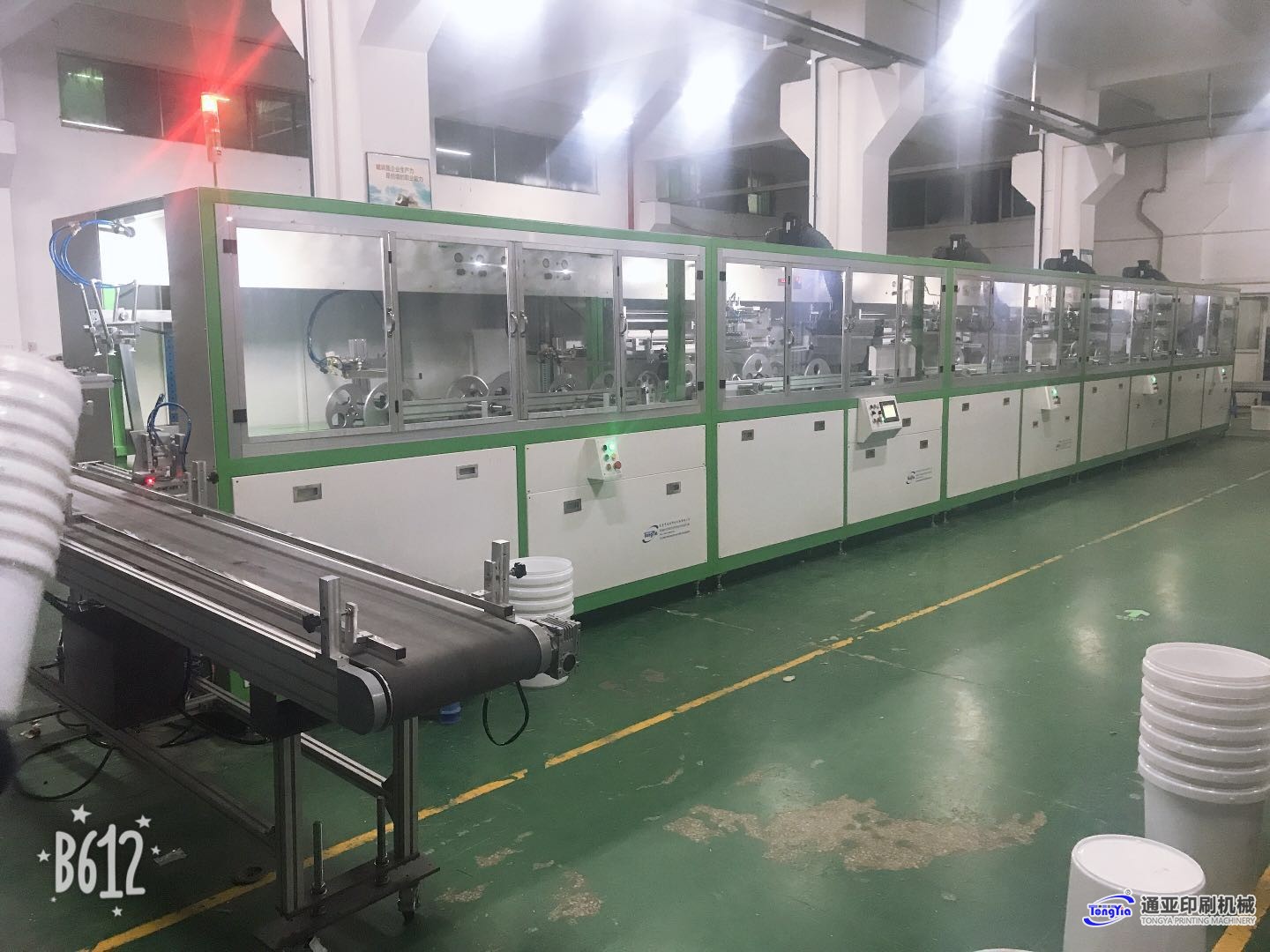 (1)TYS-102UV4-18L全自動絲網印刷生產線為四色圓面印刷機,