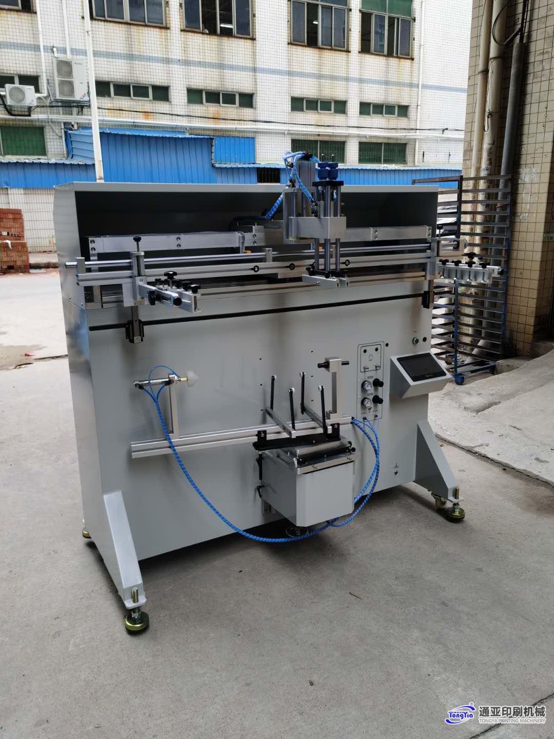 產(chǎn)品簡介:適用于:涂料桶、油漆桶、化工桶、礦泉水桶、垃圾桶、機油桶等圓形產(chǎn)品絲網(wǎng)印刷曲面印刷直徑:300mm 曲面印刷高度:300mm 機器最快速度:600-800Pcs/Hour 氣壓要求:4-6PAR電力要求:AC220V 50/60HZ 50VA機器尺寸:1650*1400*1450MM機器重量:280KG2.性能特點 本機采用PLC可編程控制器,觸摸屏操作界面,使機器操作簡